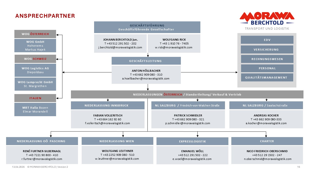 Zwei Familienunternehmen, fusioniert 1995 in Innsbruck mit langjährigem Branchen-Know-How im Speditionswesen. Für jeden Partner das passende Transportangebot. Individuelle Transportlösungen für Inlands- und Auslandstransporte mit hauseigenem Fuhrpark und hochqualifizierten Fachpersonal. Seit vielen Jahren erfolgreich.